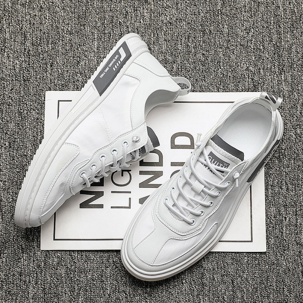 Summer Men's Board Shoes Soft Leather White Shoes Mens Leather Trendy Shoes Shell-Toe Daily Casual Shoes