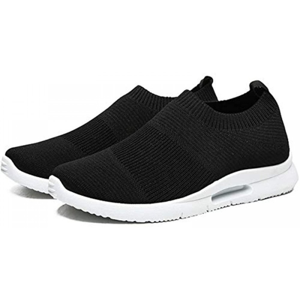 Men's Running Shoes Breathable Knit Slip On Sneakers Lightweight Athletic Shoes Casual Sports Shoes High Top Black