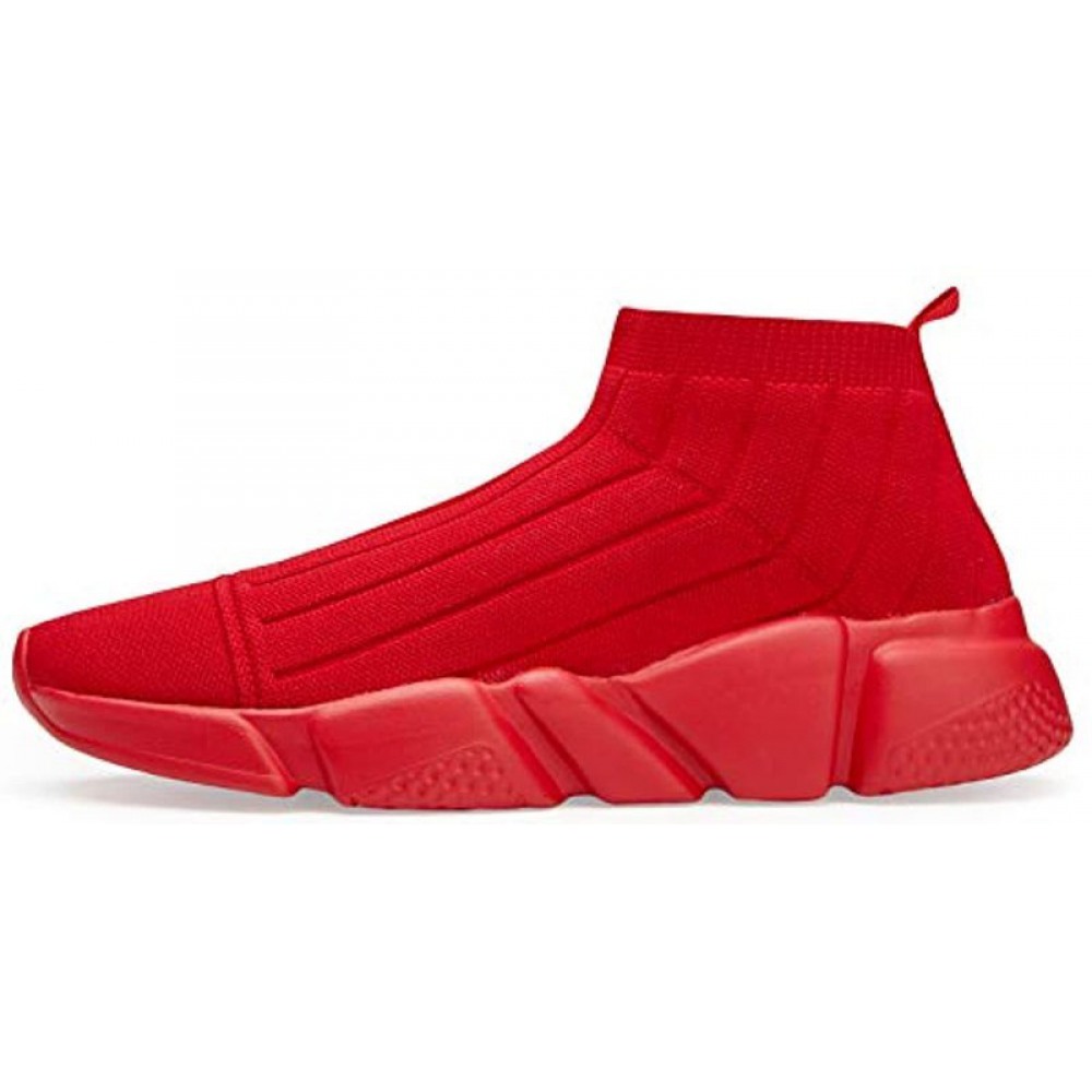 Men's Running Shoes Breathable Knit Slip On Sneakers Lightweight Athletic Shoes Casual Sports Shoes All Red