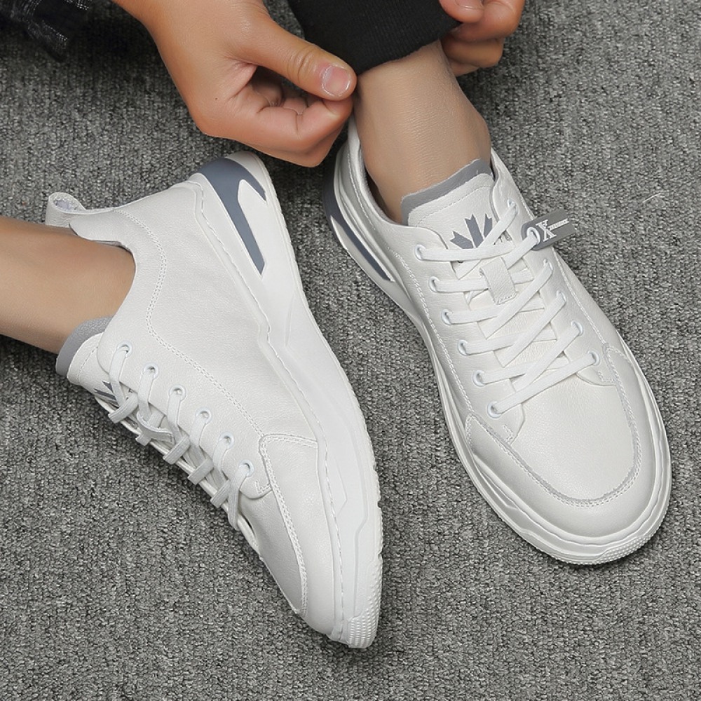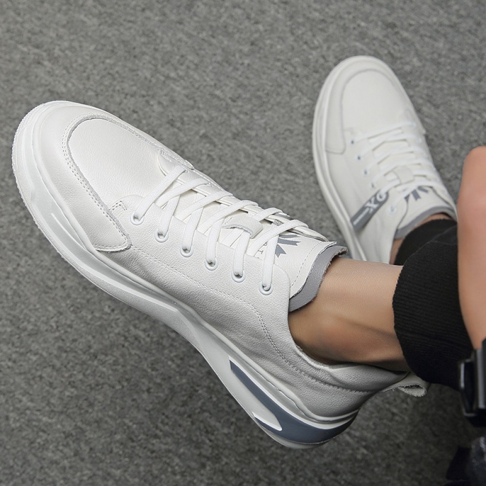 Summer Men's Board Shoes Soft Leather White Shoes Mens Leather Trendy Shoes Shell-Toe Daily Casual Shoes
