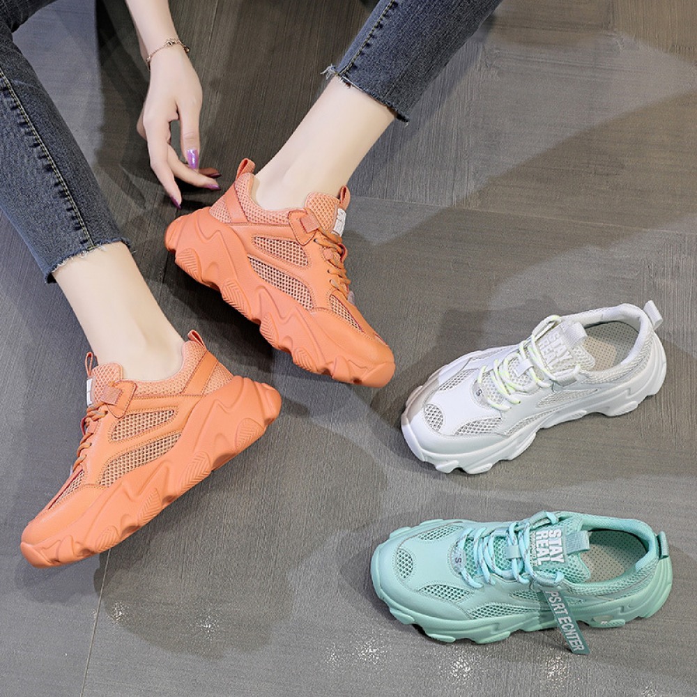 Net Shoes Spring New Women's Shoes Casual Fashion Lace-Up Breathable Mesh Shoes Running Shoes Women